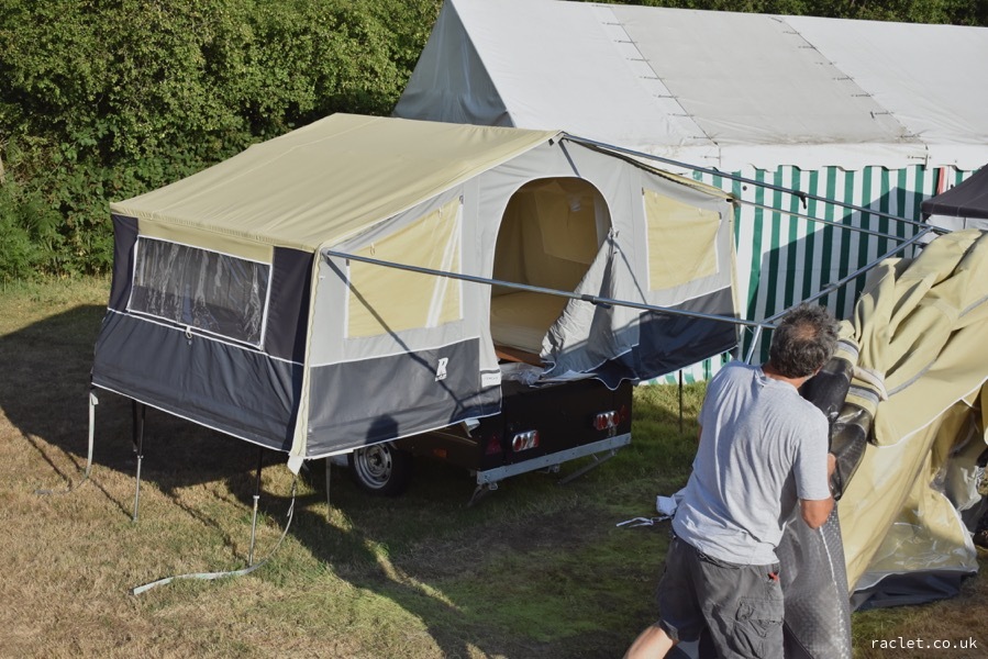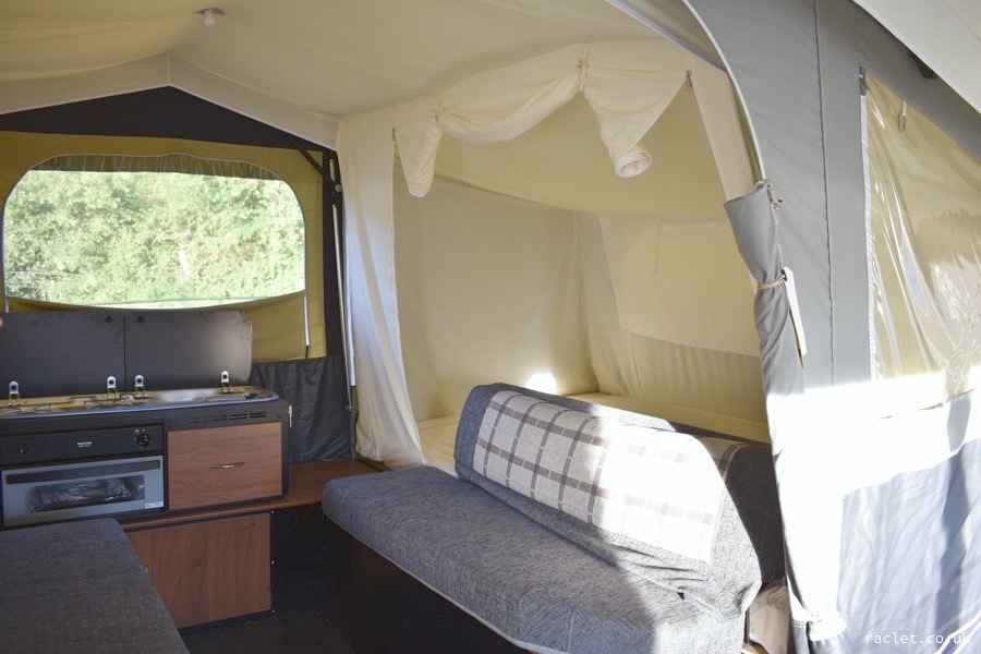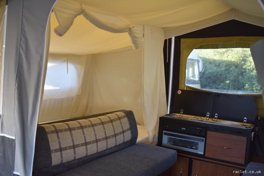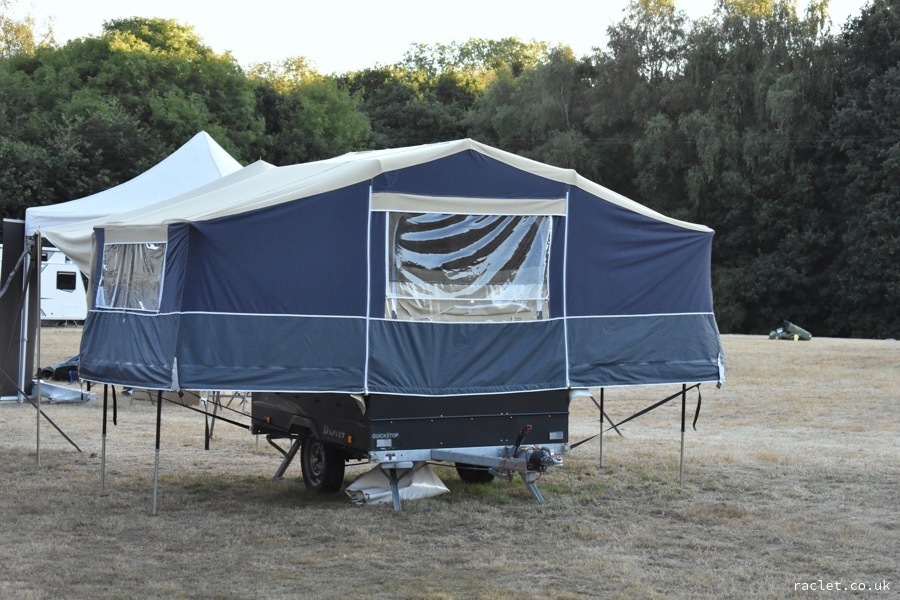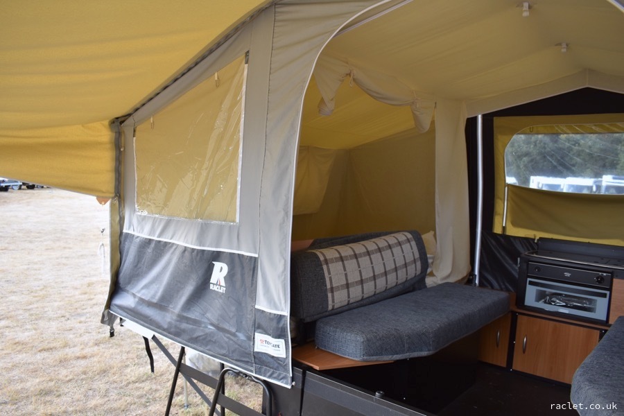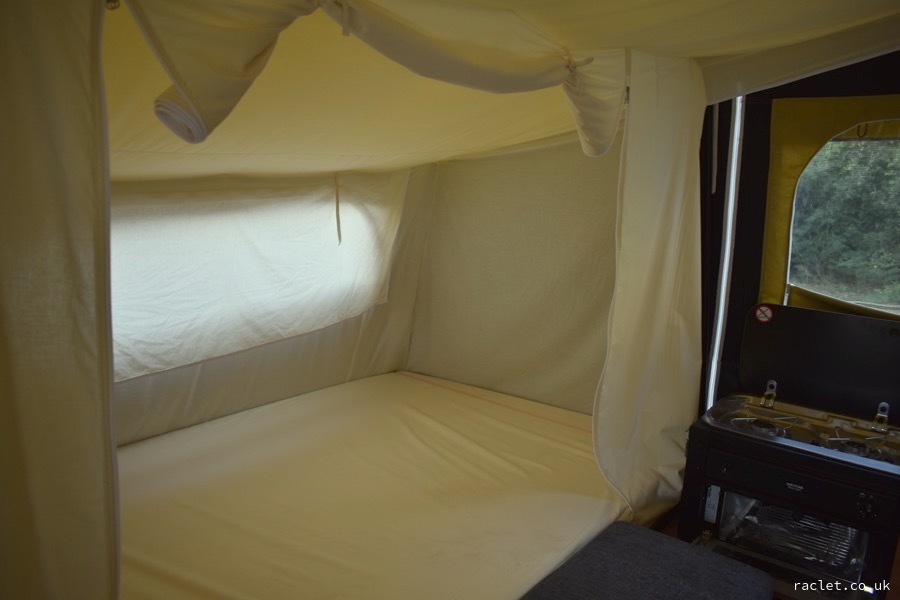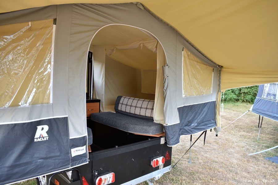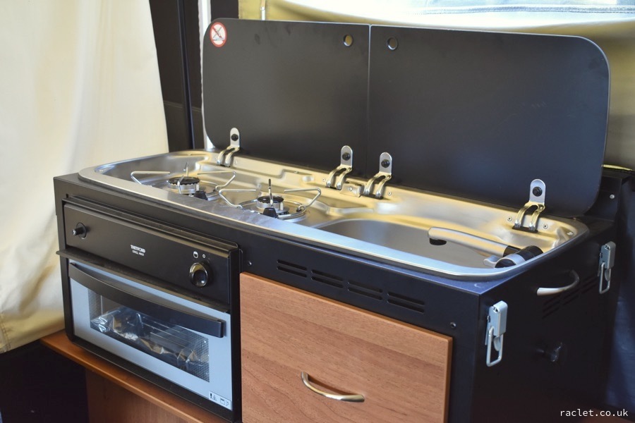 This unique trailer tent is the easiest to pitch, just open it up, and within minutes go from trailer to tent with no pegs. With the cooker, table, and a fridge you have yourself a camper. Pitch the awning and you are setup for a longer stay. Cook inside the cabin, or use the stand to cook in the awning or outside, versatile whatever the weather.